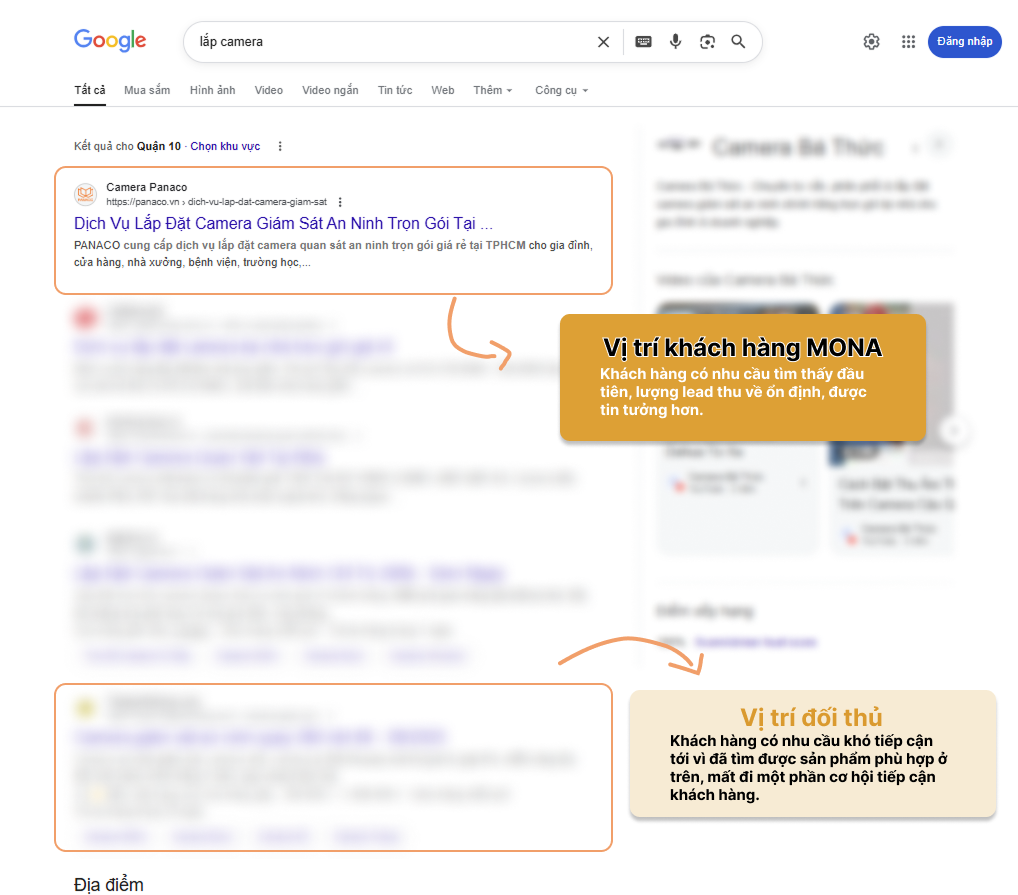 Gọi khách hàng của MONA là hãng HÀNG KHÔNG vì cứ đứng hiên ngang trên TOP 0 Google